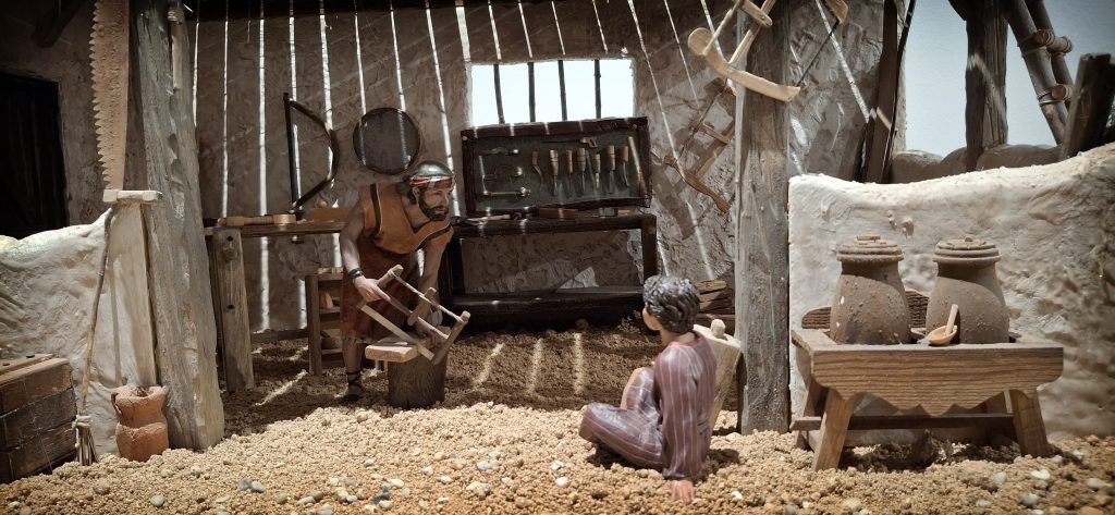 San José se va haciendo mayor, su Hijo también va creciendo y como buen padre le educa, le da unos valores y le tiene cerca suyo para transmitirle sus conocimientos.