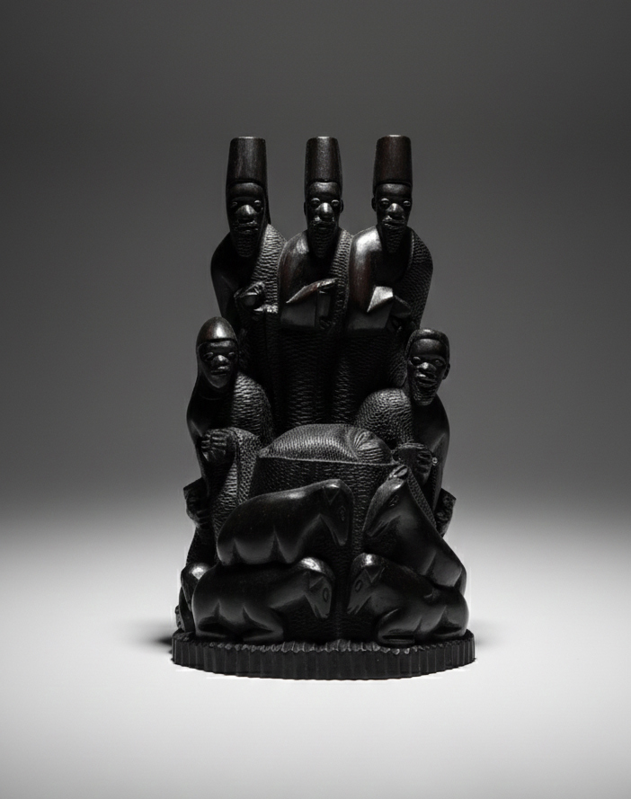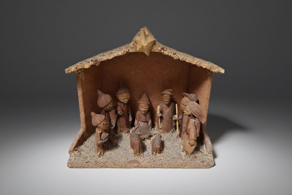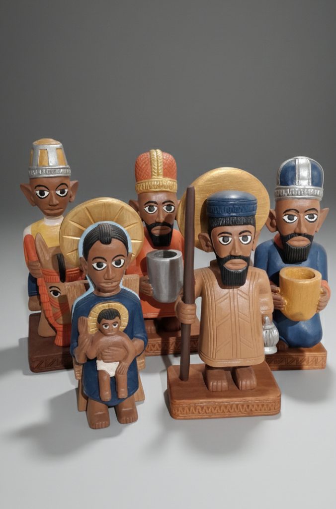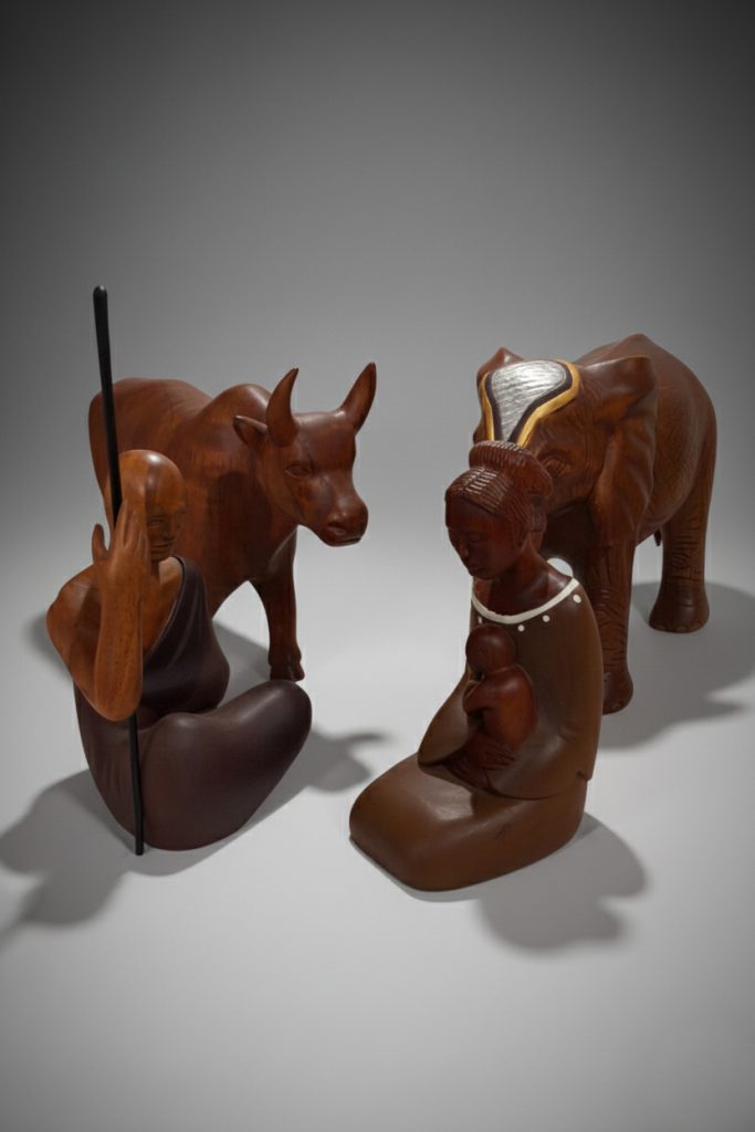 El cristianismo llega a todos los continentes y no podía faltar el continente africano donde las figuras desarrollan una estética bien diferente de la europea, además de los rasgos físicos, en muchos casos sustituyen a los animales tradicionales por animales del lugar como puede ser el caso de la adoración de los pastores de Secube Nchaso donde el animal protector es un león.